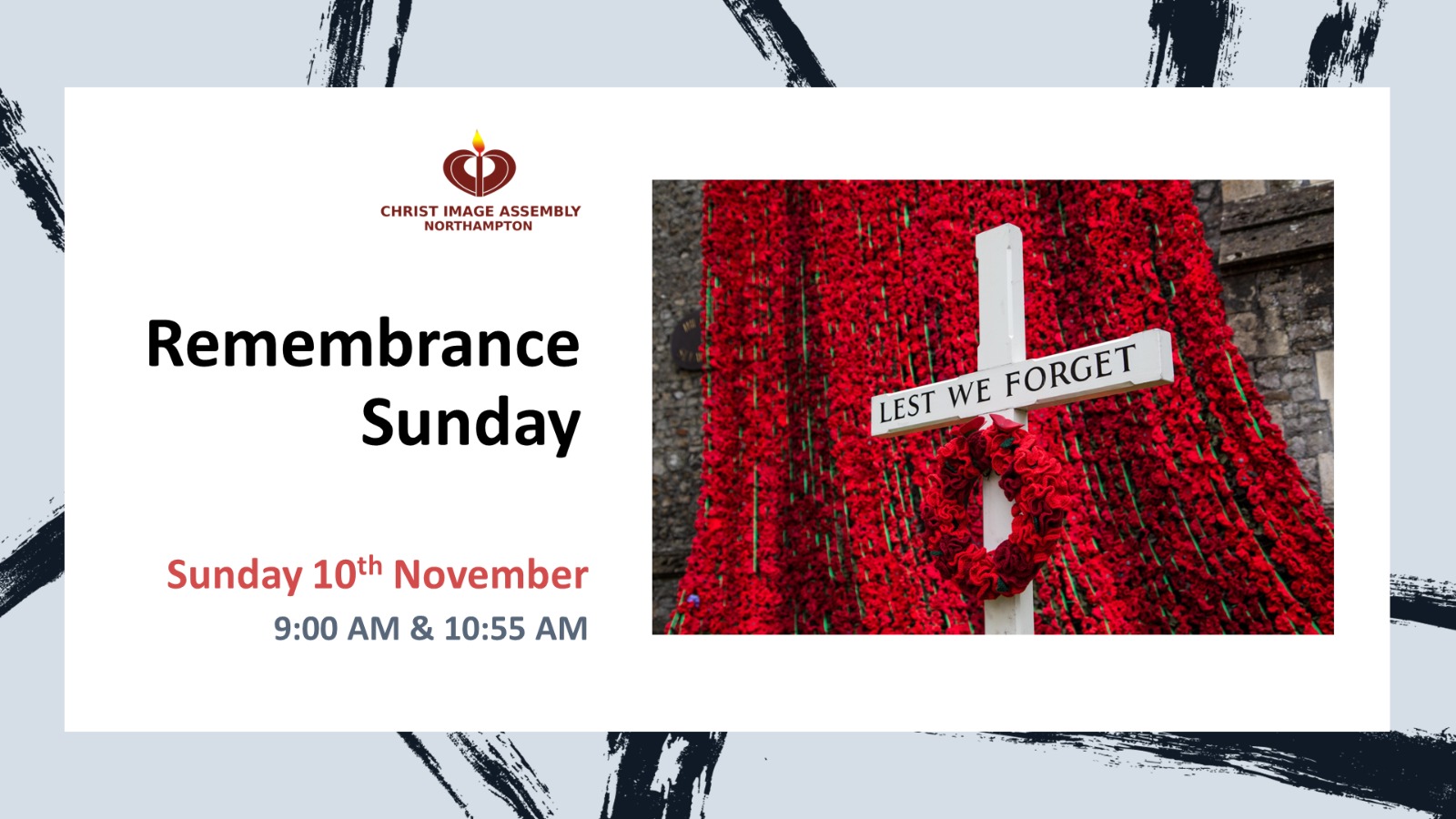 Church Venue 28-34 Wellington, Northampton, United KingdomIt is our pleasure to invite you to join us for Remembrance Sunday as we honour and remember the service and sacrifice of our fallen heroes. We will not forget them. Time: Sunday 10th November at 9:00 am & 10:55 am
